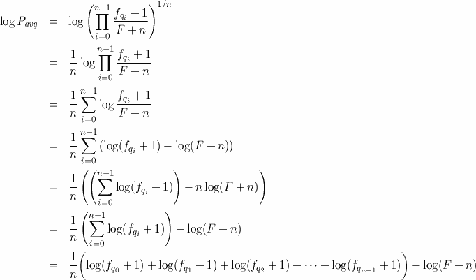 Given a corpus and a query text, your program will compute the logarithm of the average probability that the corpus author wrote each word in the query text using the following expression. (The appendix below explains why we are using logarithms and why we are using this particular expression. While understanding the appendix isn't essential to the assignment, I recommend it as interesting background information.)