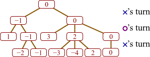 Suppose a game player has constructed a game tree as given below. In this tree, high numbers represent good boards for X, and it is currently X's move.