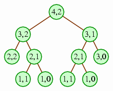 At the root is a node labeled (4,2), with children (3,2) and (3,1).