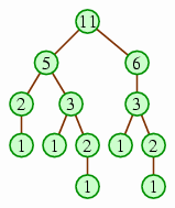 The root's grandchild (2,1) (whose parent is (3,1)) has two children, labeled (1,1) and (1,0).