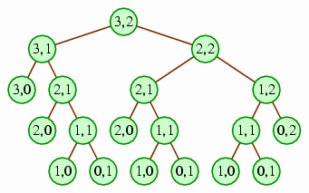 At the root is a node labeled (3,2), with children (3,1) and (2,2).