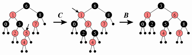 The red constraint: All red nodes can have only black children.