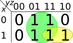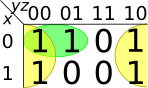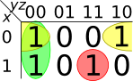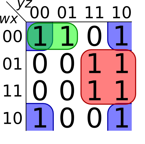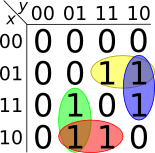 two 2-bit inputs. Draw a Karnaugh map and indicate a
