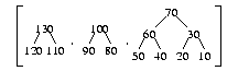 Back to our problem of the random-access list. What we'll do is use a variation of the skew binary representation as a list, where we replace each number in the list with a tree of that size. For example, 13 would be reprepresented as a list as [3,3,7]. To represent the list of the 13 numbers 10, 20, 30, ..., 130, we would have a list of trees.