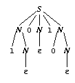 S -> N 0 N 1 N -> 0 N 1 N -> 0 1 N -> 0 1 0 N -> 0 1 0