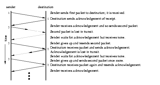 One challenging problem is deciding how long to wait before giving up on acknowledgements. The sender adapts based on what it has recently seen. Doing this well turns out to be quite complicated. We'll skip the details on this adaptation process - it's complicated.